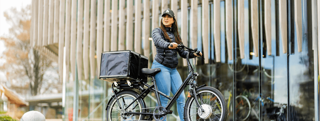 Als bezorgdienst wil je je onderscheiden van de concurrentie. Met een elektrische bezorgfiets in jouw eigen huisstijl, maak je niet alleen een duurzame keuze, maar ook een opvallende. Zo kan je de kritische consument aan jouw restaurant binden. Door jouw bezorgfiets als rijdend reclamemiddel in te zetten, maak je jouw vestiging extra zichtbaar. Cyclefix biedt de mogelijkheid om jouw e-bike te voorzien van branding, zodat je nog meer opvalt tijdens het thuisbezorgen.